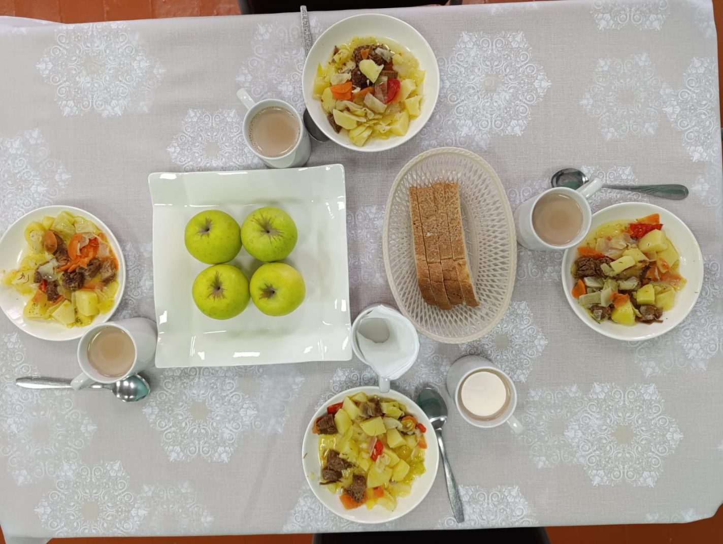 04.03.2025г. Меню: гуляш (говядина), гречка рассыпчатая, сузбеше, чай, хлеб.