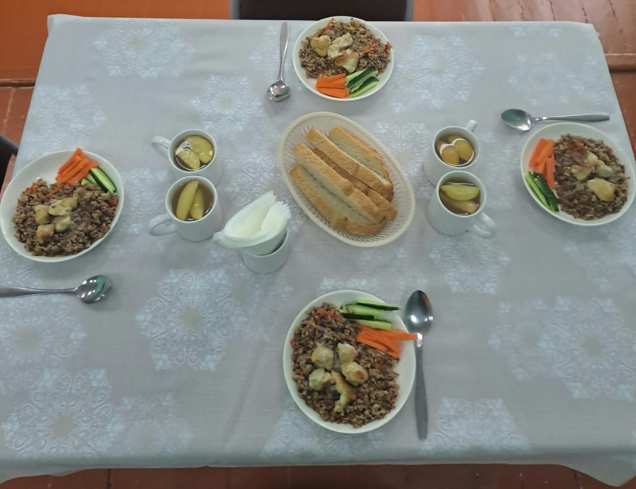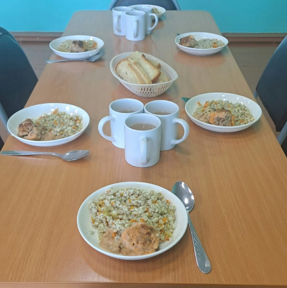 14.05.2025г. Меню: гуляш (говядина), гречка рассыпчатая, сузбеше, чай с сахаром, хлеб.