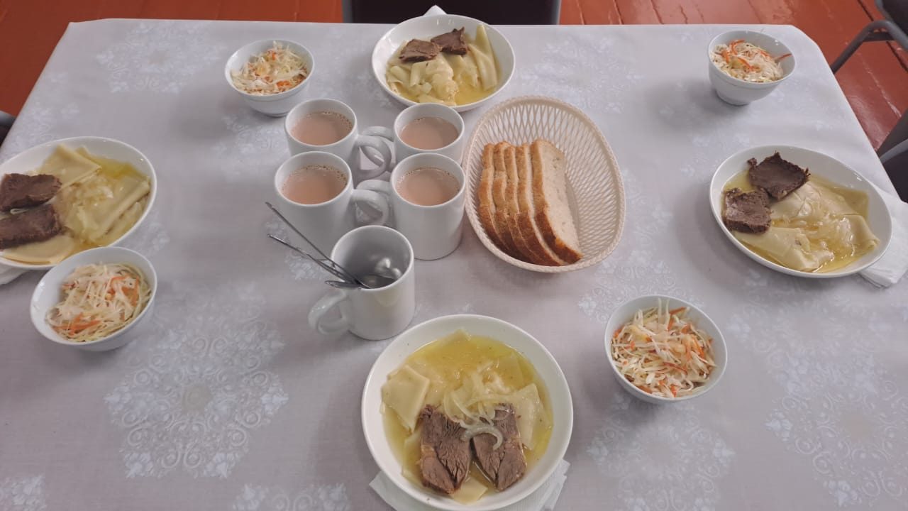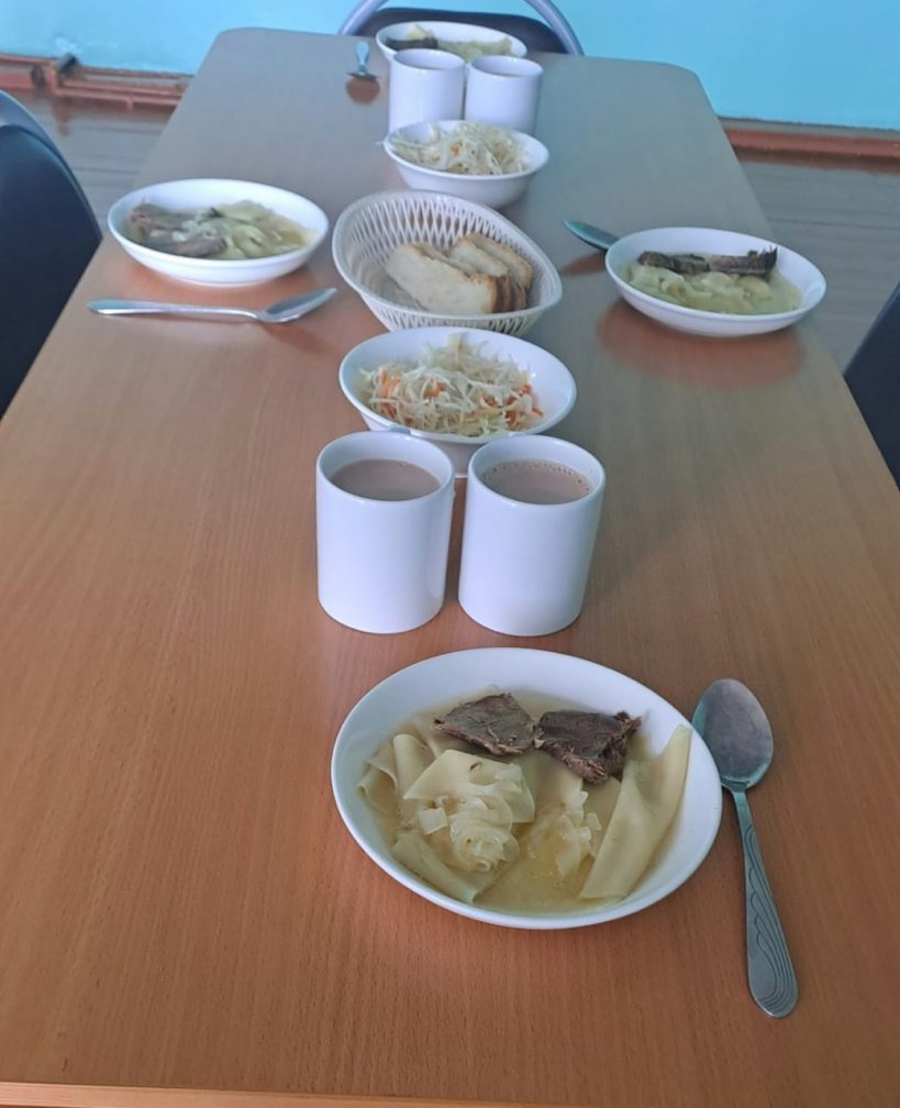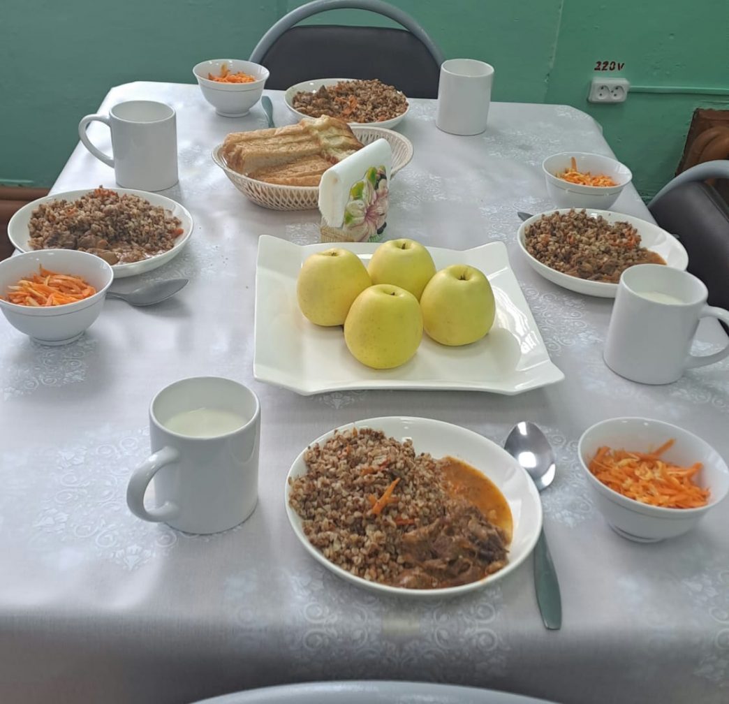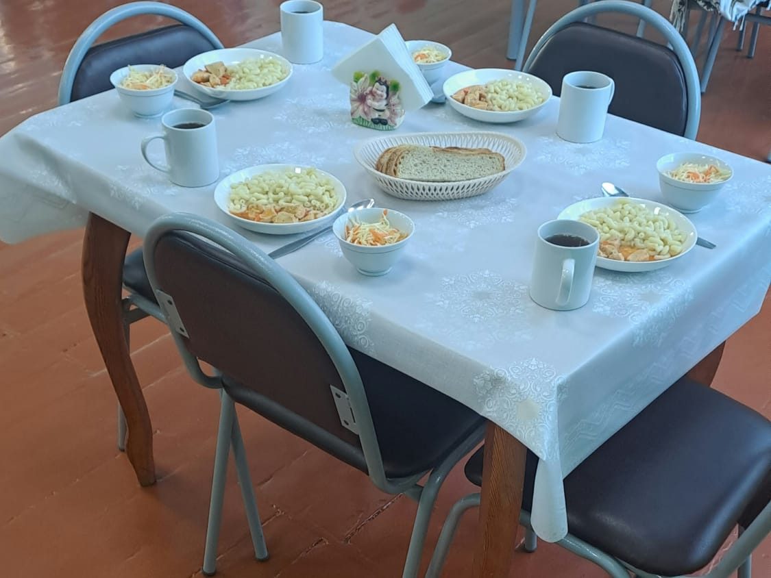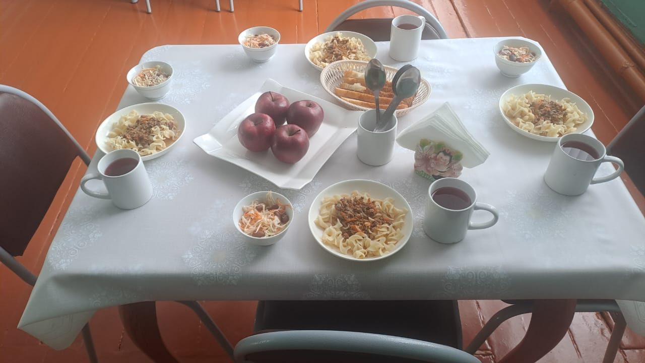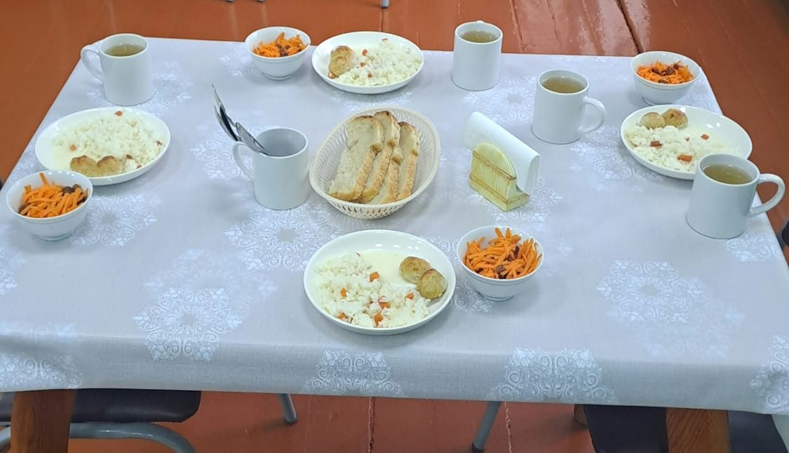 19.03.2025г. Меню: гуляш (говядина), гречка рассыпчатая, творог (сузбеше),чай с сахаром, хлеб.