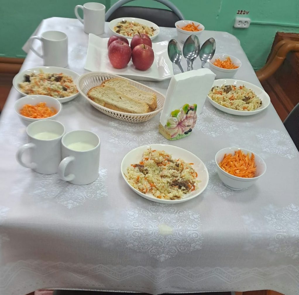 24.01.2024г. Меню: суп гречневый, плов(говядина),салат из свежих овощей, кисель, вафля, яйцо вареное, хлеб.