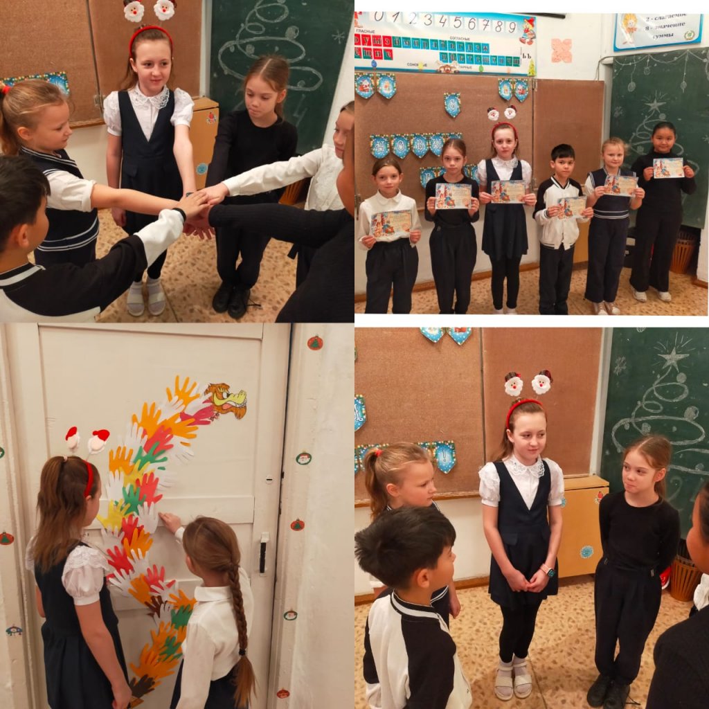 «Новобратское ауылындағы ОБС» КММ-де 1-сынып оқушыларына «Жаңа жылды көңілді, тату-тәтті қарсы алайық!» тақырыбында сынып сағаты өтті.