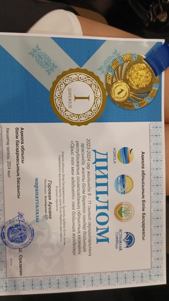 Көкшетау қаласында 3-7 қаңтар аралығында пәндер бойынша Республикалық олимпиаданың облыстық кезеңі өтті. Біздің мектептен 9 сынып оқушы Горовая Ариана орыс тілі мен әдебиеті пәнінен қатысып, 1 орын иеленді. Оқушыны дайындаған мұғалімі Бондаренко Светлана Григорьевна....